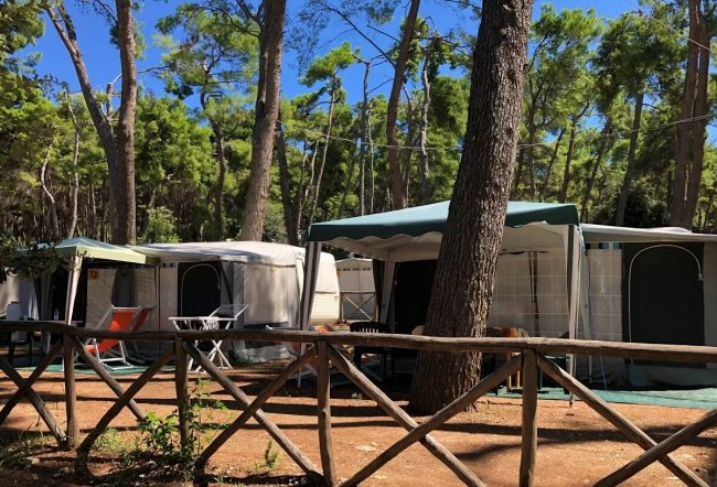 Il campeggo è riservato a tende e roulotte con delimitazione naturale delle piazzole evitando la cementificazione