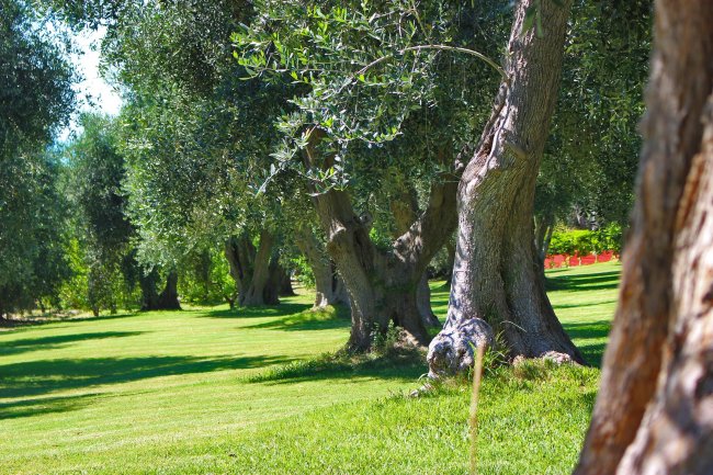 Ulivi secolari su prato.